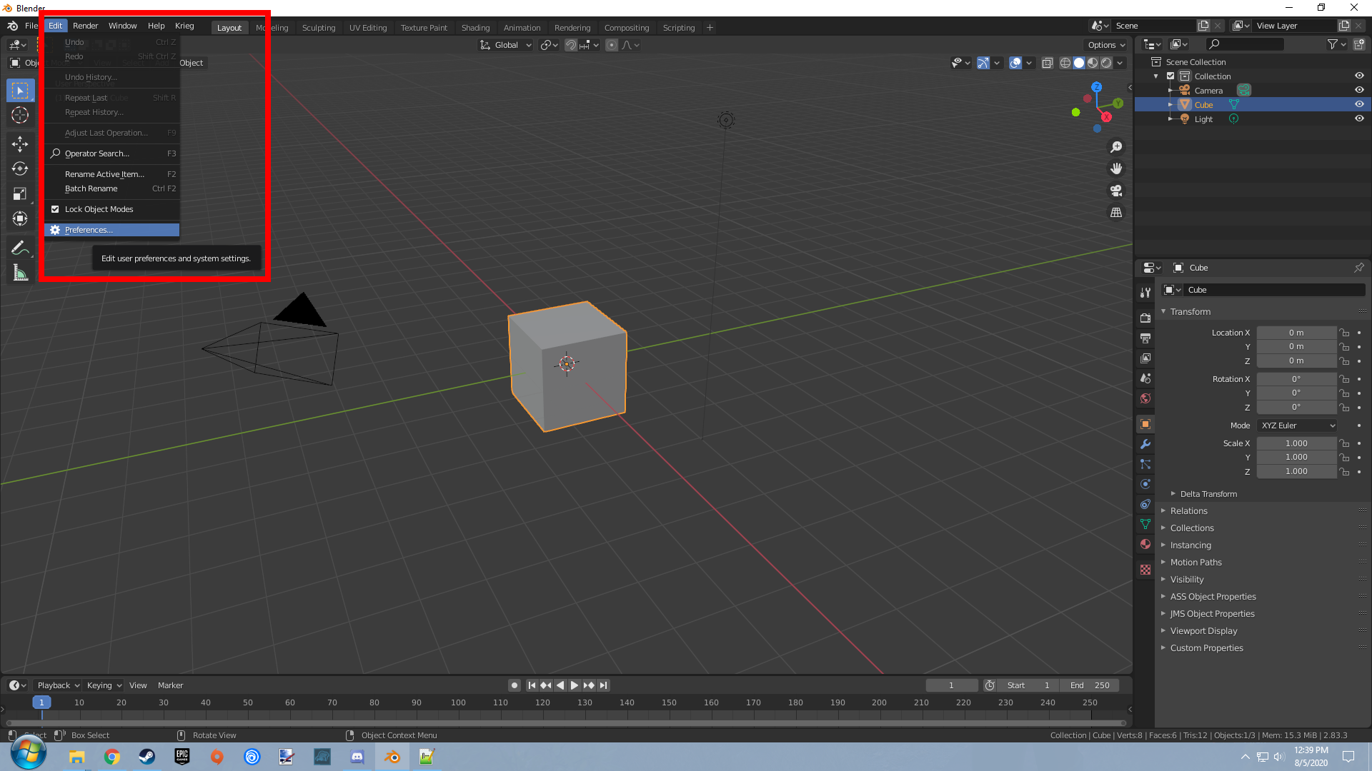 Navigate to the "Edit" dropdown and select the button labeled "Preferences as seen in the image below.