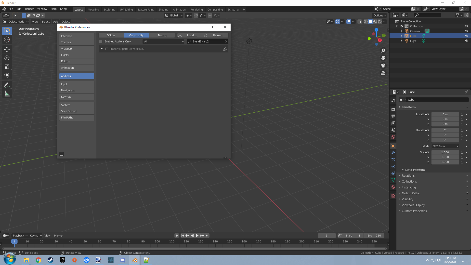 If you're on this page then you're likely a beginner asking yourself how to install the plugins offered here for Halo development. We shall go over two methods for installing plugins. Either through the menu under preferences or manually by navigating to the addons directory and dropping them off there.