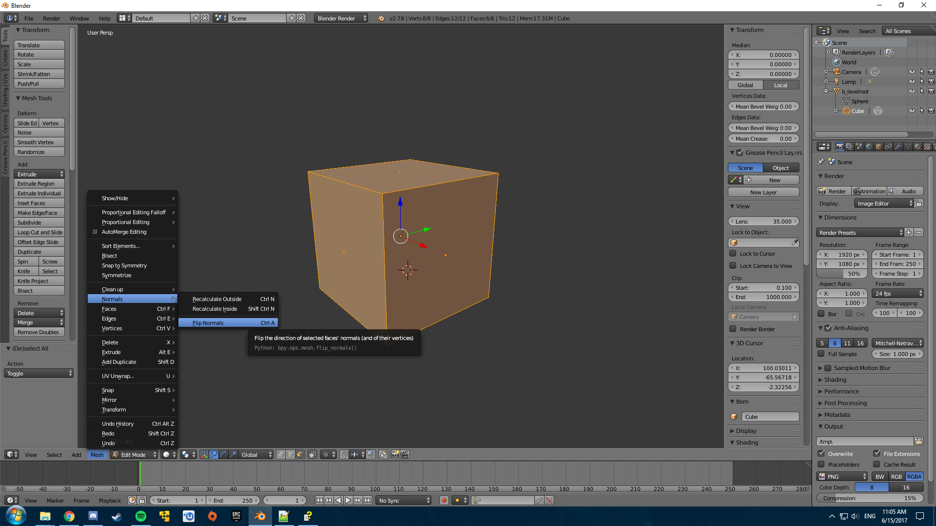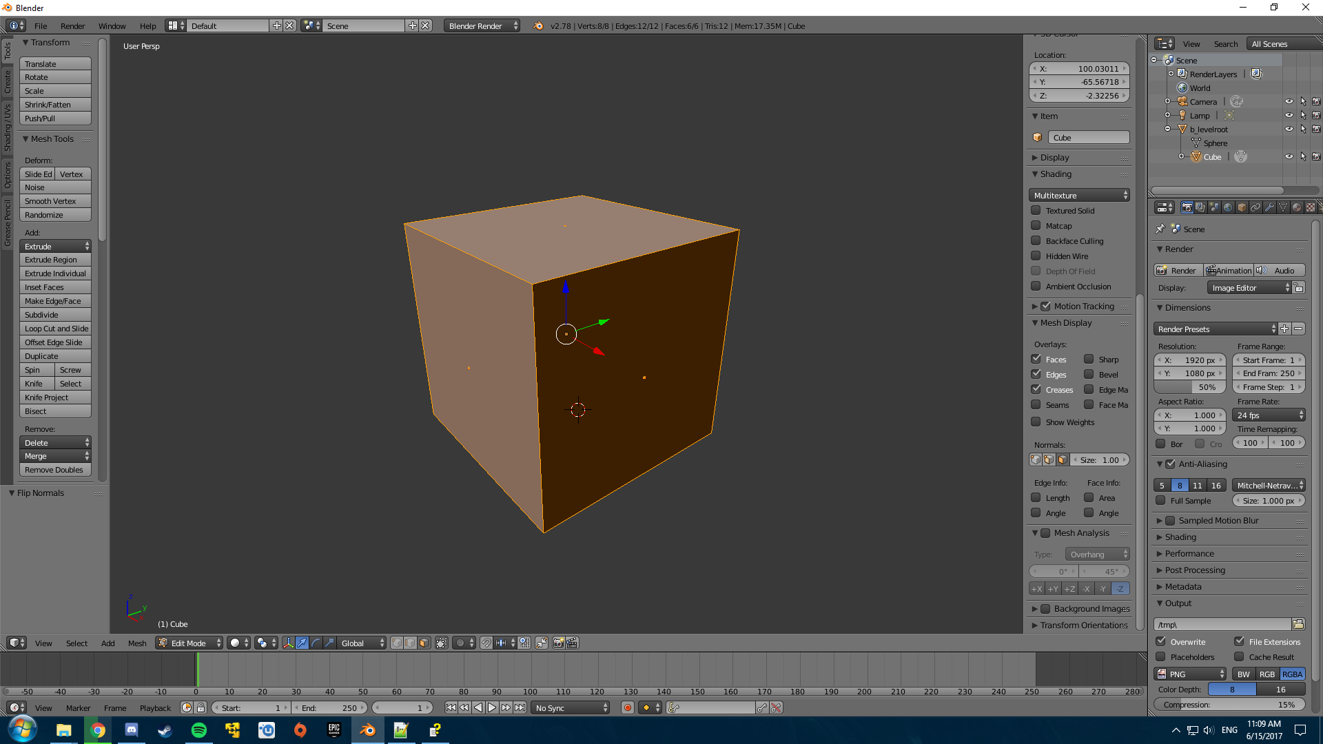 You should now notice that b_levelroot can be expanded to reveal the child which is our cube object. Let us select our cube and continue working on our level. If you were to somehow export the level now without errors the first thing you would notice is that textures do not appear. This is because by default the normals are facing outwards on our mesh. To fix this we must flip the normals on the mesh so that we may see our textures properly ingame.