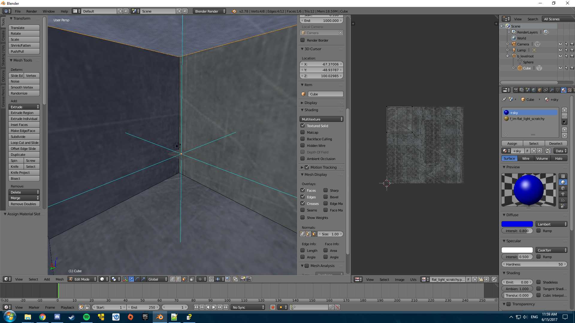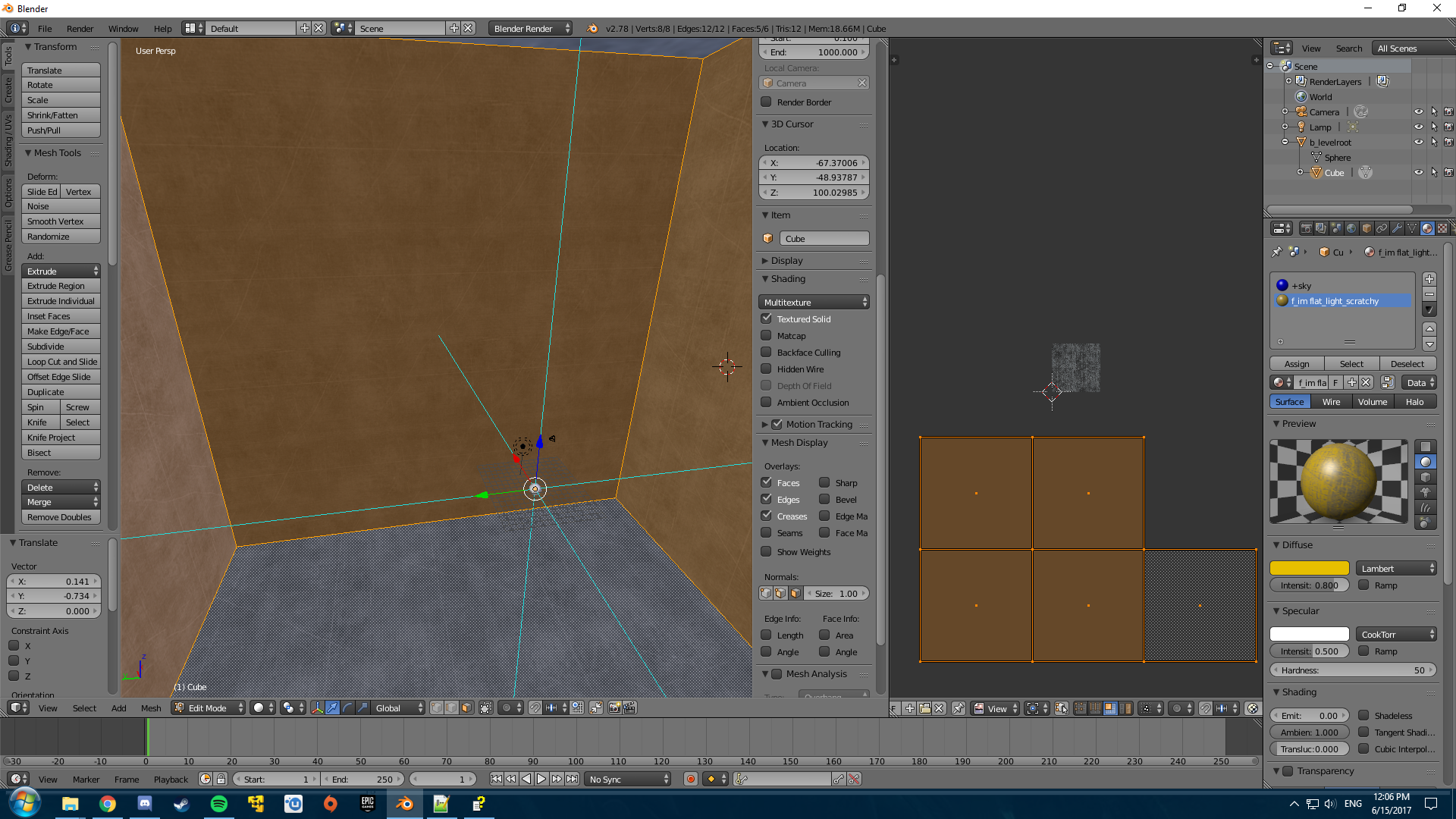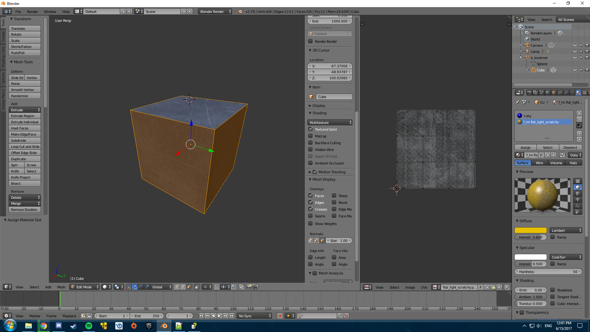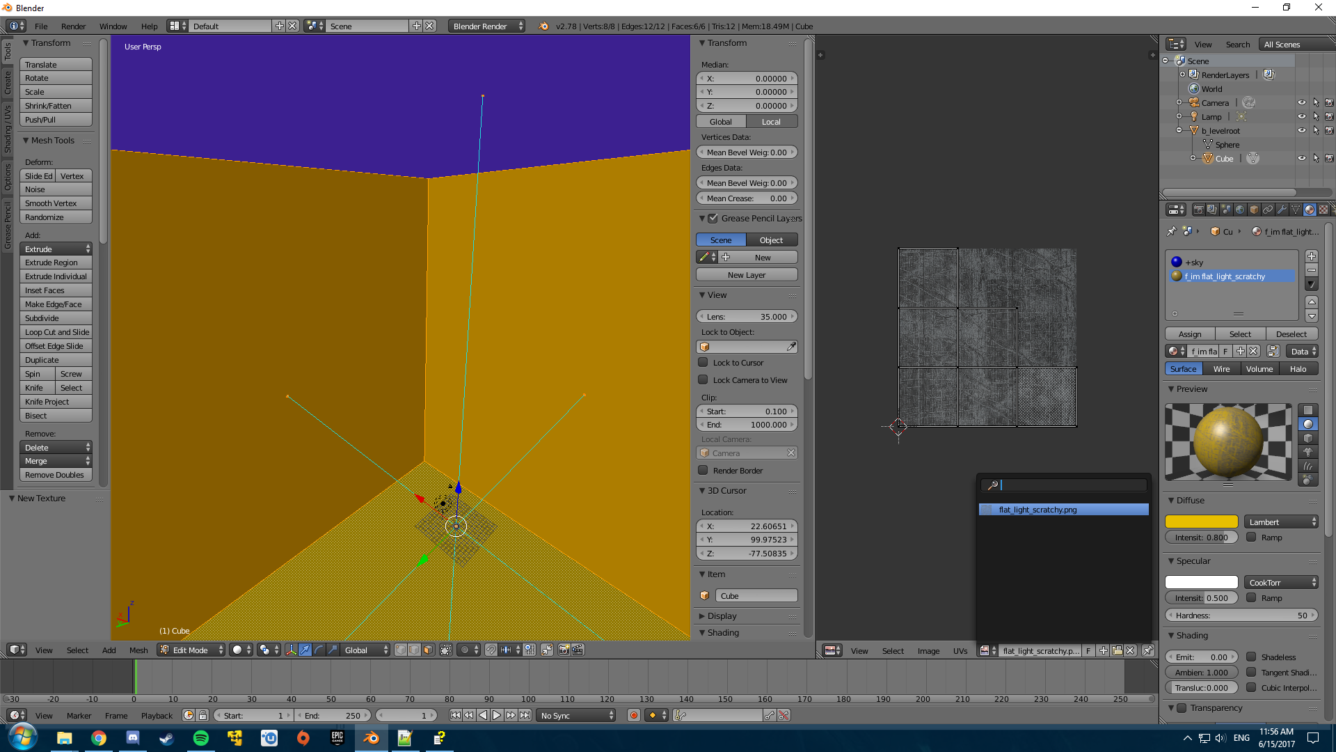This is the same texture we are calling when we made the second material. Go ahead and save it and then apply it by going to your material and adding a texture file like so. Go to the materials tab and select f_im flat_light_scratchy then go into the textures tab.